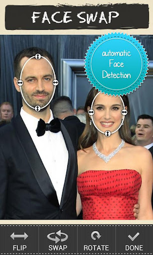 Simply take a photo(s), or choose a photo from your albums, and select the face area of the 2 faces you want to swap and click the swap button and Face Swapper does the rest....