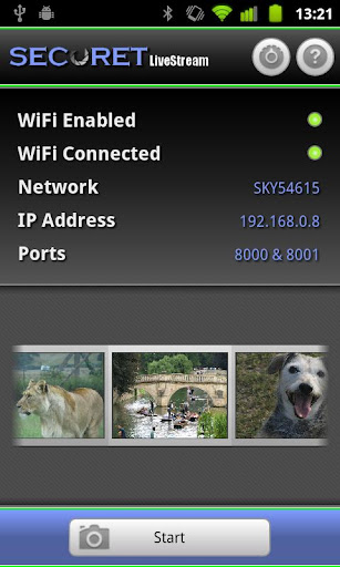 2. Can also stream directly to another Android device (in conjunction with SECuRET SpyCam);